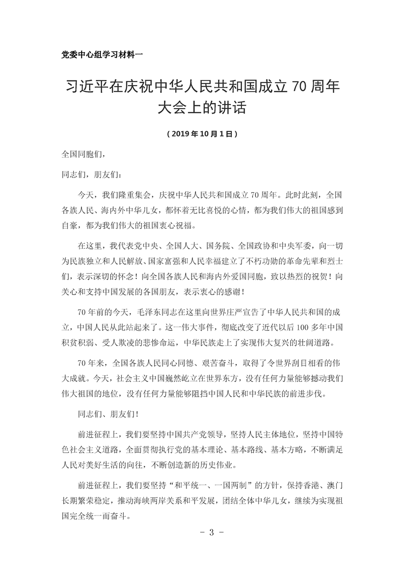 2019党委中心组第11次集中学习材料