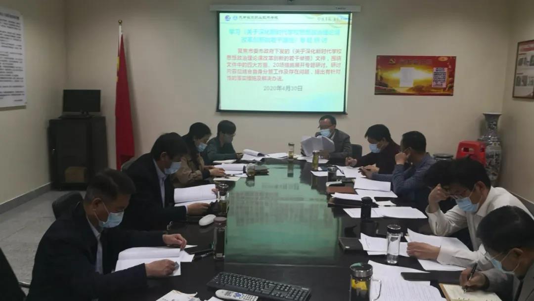 会议通过集中学习《团结合作是国际社会战胜疫情最有力武器》和国家安全法,进一步了解了中国人民在疫情防控中展现的中国力量、中国精神和中国效率以及中国对世界疫情控制做出的重要贡献;通过学习国家安全,了解国家安全的内涵、基本内容及其相关法律,进一步强化了国家安全意识和法律意识;通过集中学习市委、市政府《关于深化新时代学校思想政治理论课改革创新的若干措施》并围绕文件中的四大方面、20项措施展开责任分工和专题研讨,针对目前我院所存在的问题,每位院领导结合自身分管工作提出有针对性的落实措施及解决办法,下一步学院将出台办法予以具体贯彻落实;通过学习传达市委宣传部、市委教育工委关于意识形态工作专项检查情况的通报,查找我院存在的共性问题,梳理2020年意识形态工作18项并逐一分工落实。