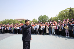 四月的北京,清华园内紫荆芳菲、绿影婆娑,清华学子迎来了他们的“学长”习近平。