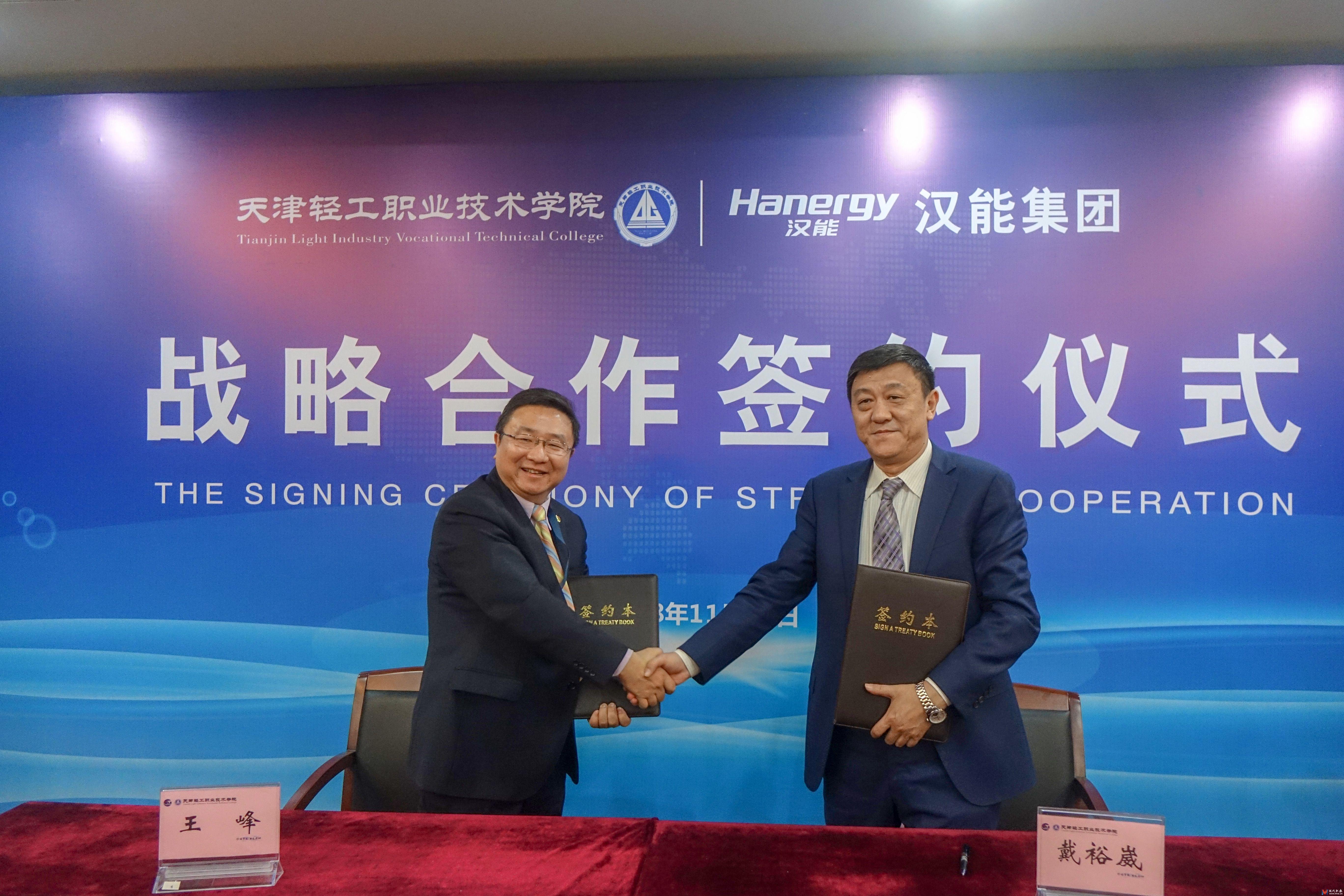 11月21日,新利18平台与汉能集团举行战略合作签约仪式。 天职网讯(记者 艾迪 摄影 靖鑫)11月21日,新利18平台与汉能集团举行战略合作签约仪式。天津市教委高职高专处处长杨荣敏,海河教育园区事业发展局局长张勇,汉能集团副总裁、汉能学院院长王峰,天津新能源协会秘书长师新利,轻工职业技术学院党委书记曹燕利、院长戴裕崴等领导出席会议。会议由新利18平台校企合作处处长马俊红主持。 汉能集团副总裁王峰与学院院长戴裕崴共同签署校企合作战略协议