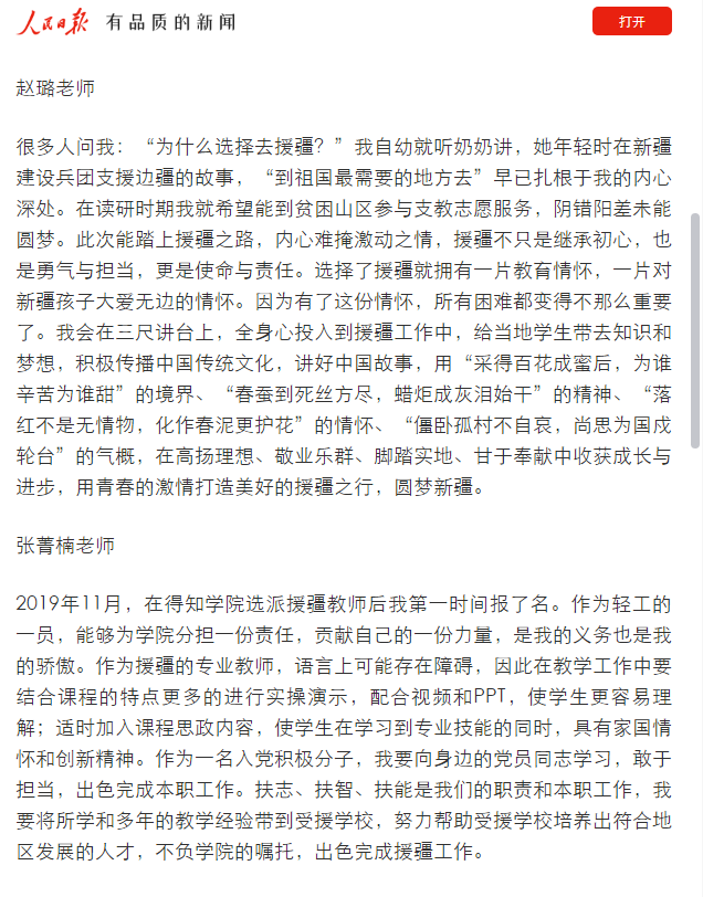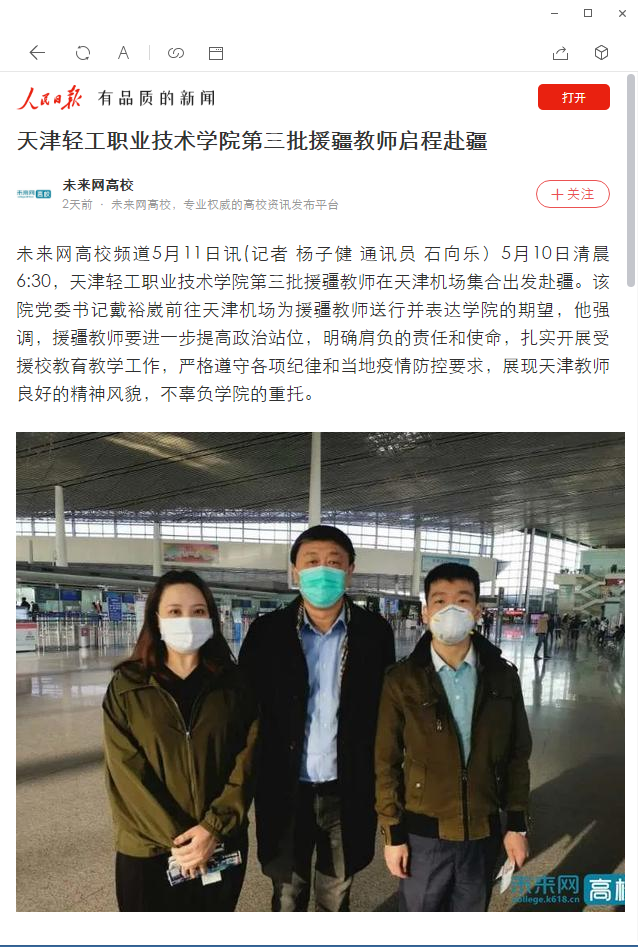 《人民日报》客户端报道我院第三批援疆教师启程赴疆