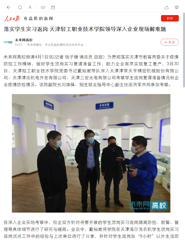 《人民日报》客户端 落实学生实习返岗 新利18平台领导深入企业现场解难题