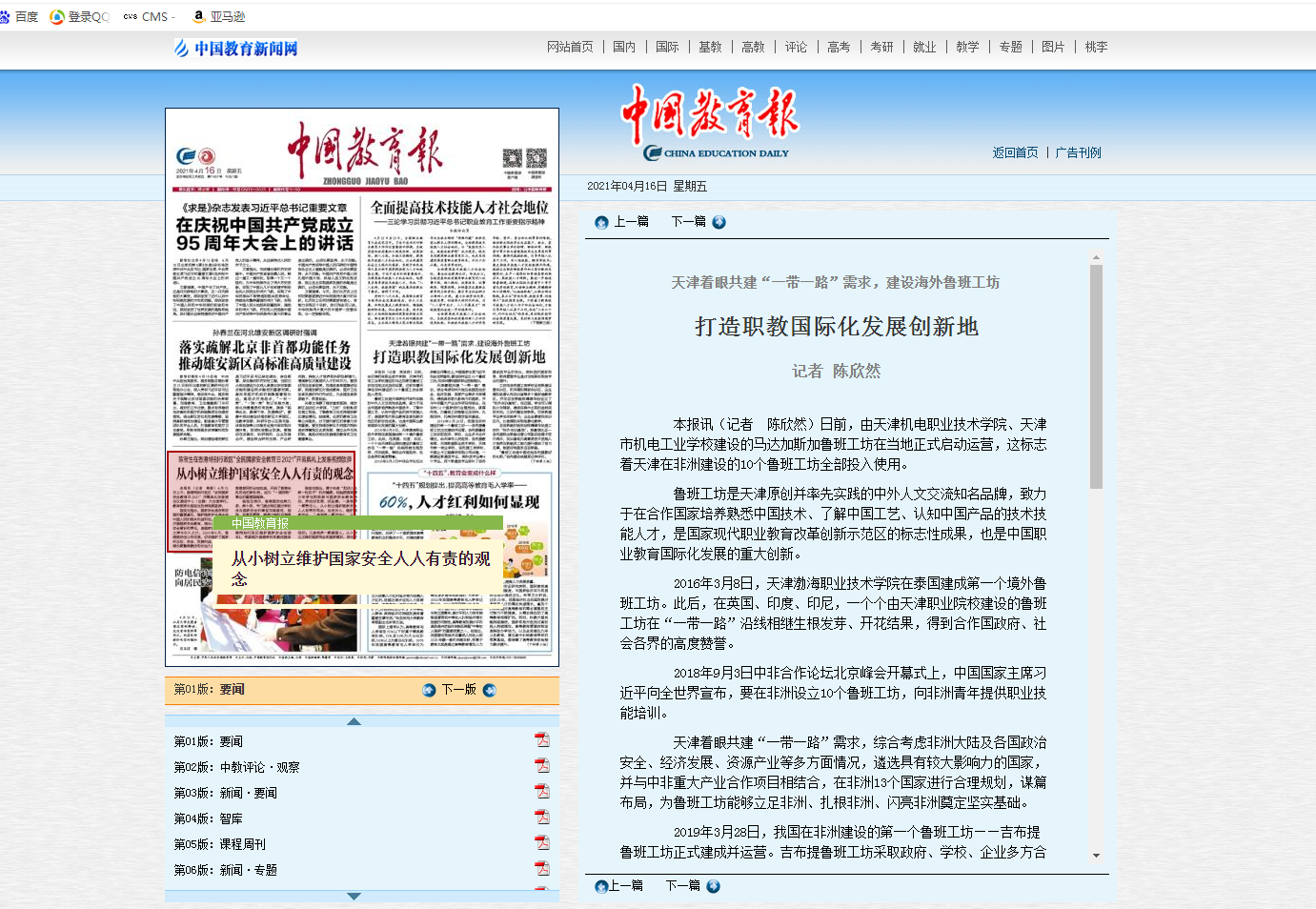 《中国教育报》:打造职教国际化发展创新地