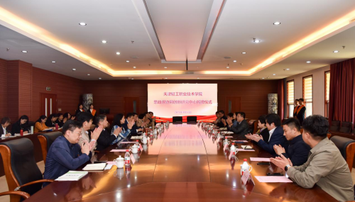 我院思政课协同创新研究中心的合作单位分别为:北京文华在线教育科技股份有限公司、高等教育出版社天津市教学服务中心、山西华兴科软有限公司、天津超星数图信息技术有限公司。出席会议的各单位代表为:人民网文华在线副总裁刘雨昕、高等教育出版社天津市教学服务中心主任袁琳、山西华兴科软有限公司副总经理兰二明、超星集团副总经理韩震。