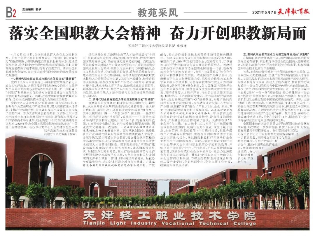 《天津教育报》:落实全国职教大会精神 奋力开创职教新局面