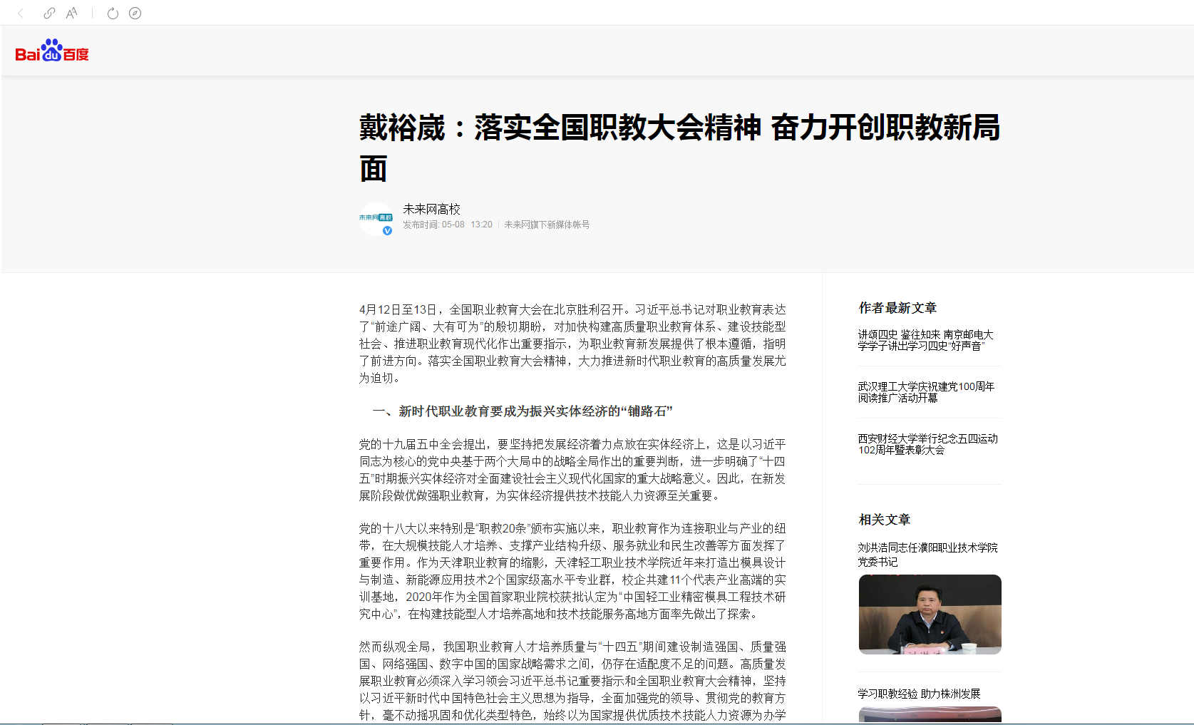 4月12日至13日,全国职业教育大会在北京胜利召开。习近平总书记对职业教育表达了“前途广阔、大有可为”的殷切期盼,对加快构建高质量职业教育体系、建设技能型社会、推进职业教育现代化作出重要指示,为职业教育新发展提供了根本遵循,指明了前进方向。落实全国职业教育大会精神,大力推进新时代职业教育的高质量发展尤为迫切。