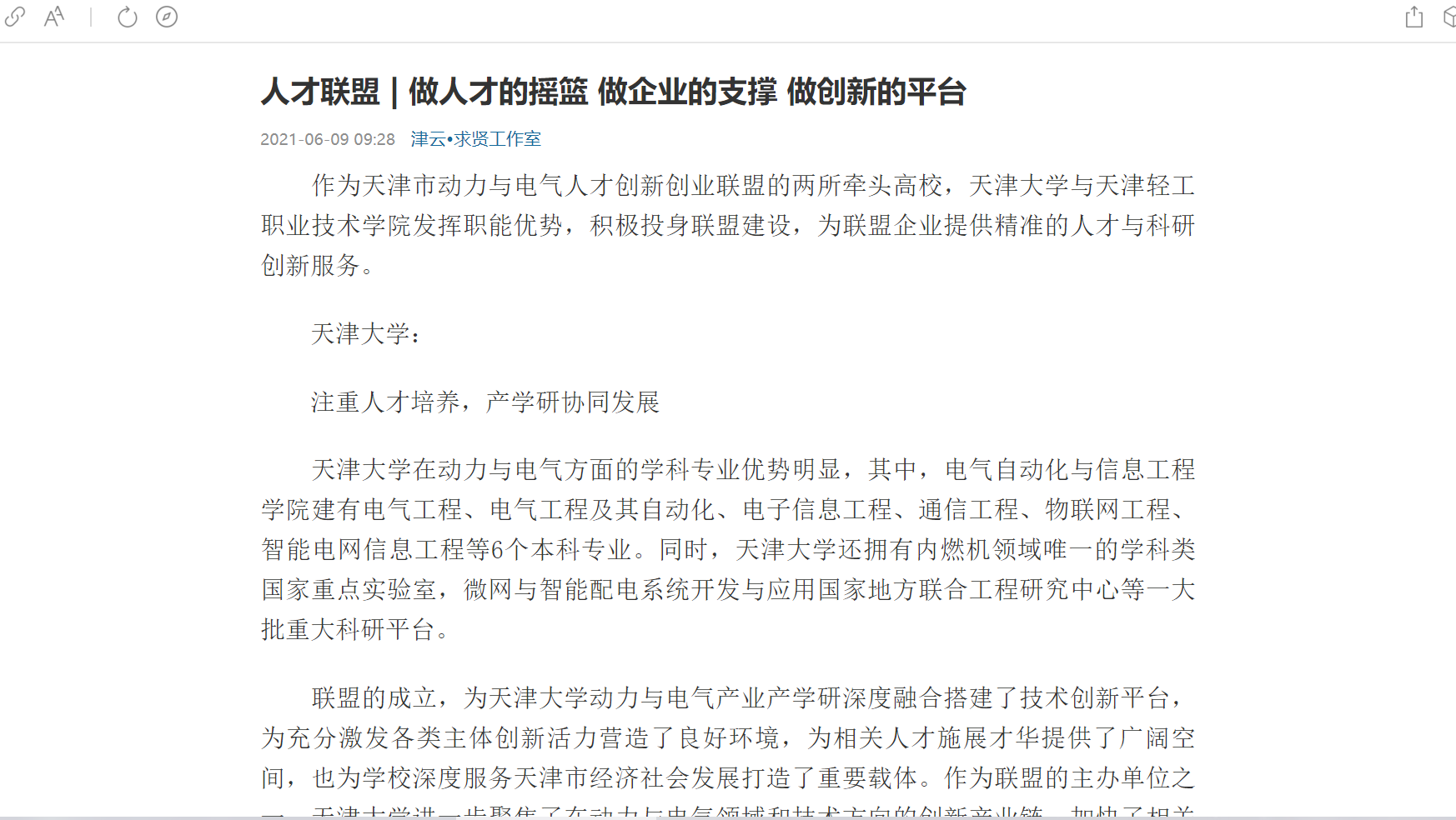 作为天津市动力与电气人才创新创业联盟的两所牵头高校,天津大学与新利18平台发挥职能优势,积极投身联盟建设,为联盟企业提供精准的人才与科研创新服务。