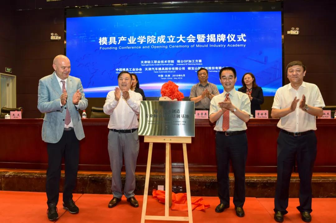 2019年5月23日,新利18平台围绕精密制造、智能制造的行业转型升级需要,与世界知名企业瑞士GF加工方案集团、中国模具工业协会、天津汽车模具股份有限公司、银宝山新科技股份有限公司合作共建国内模具行业首个多元构成的模具产业学院揭牌成立。