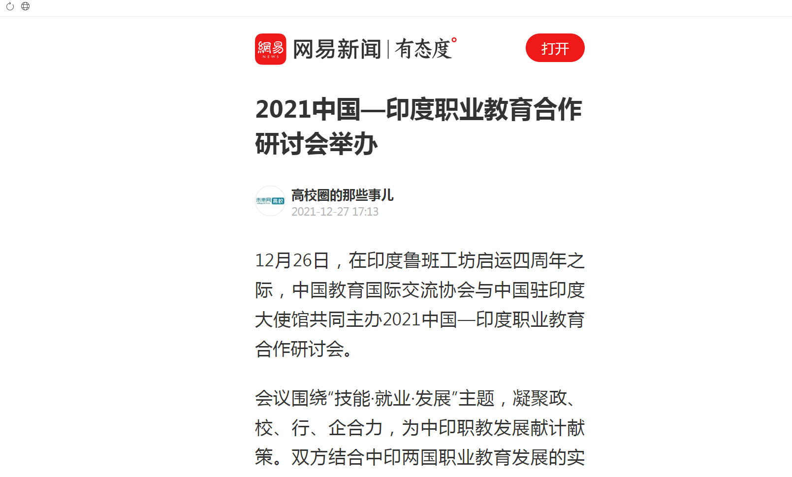 网易新闻:2021中国—印度职业教育合作研讨会举办
