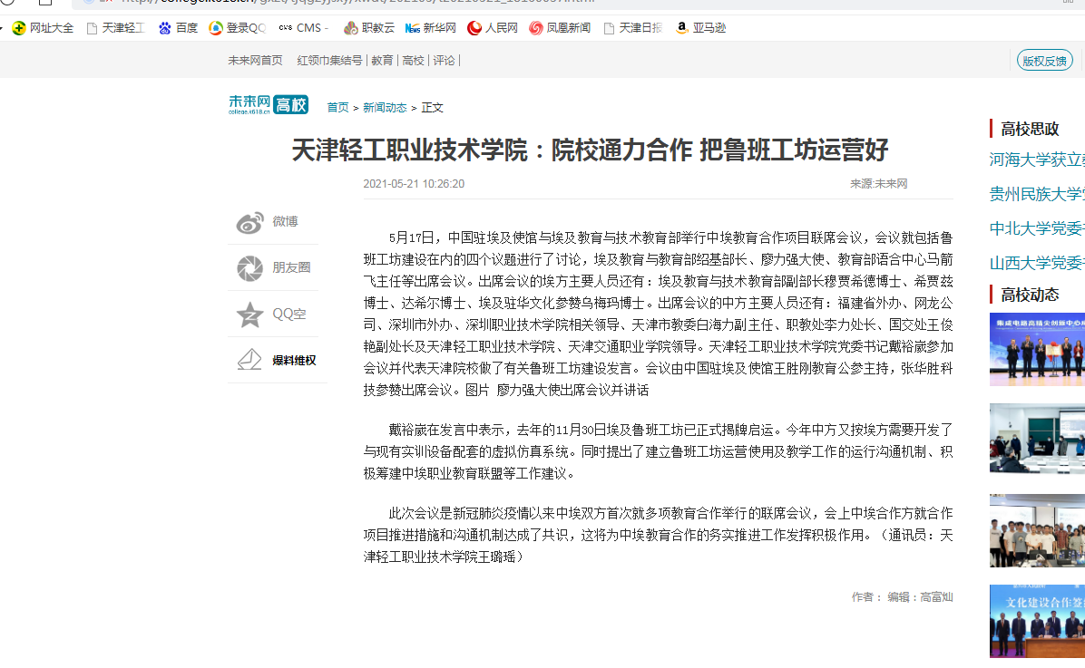 未来网:新利18平台:院校通力合作 把鲁班工坊运营好