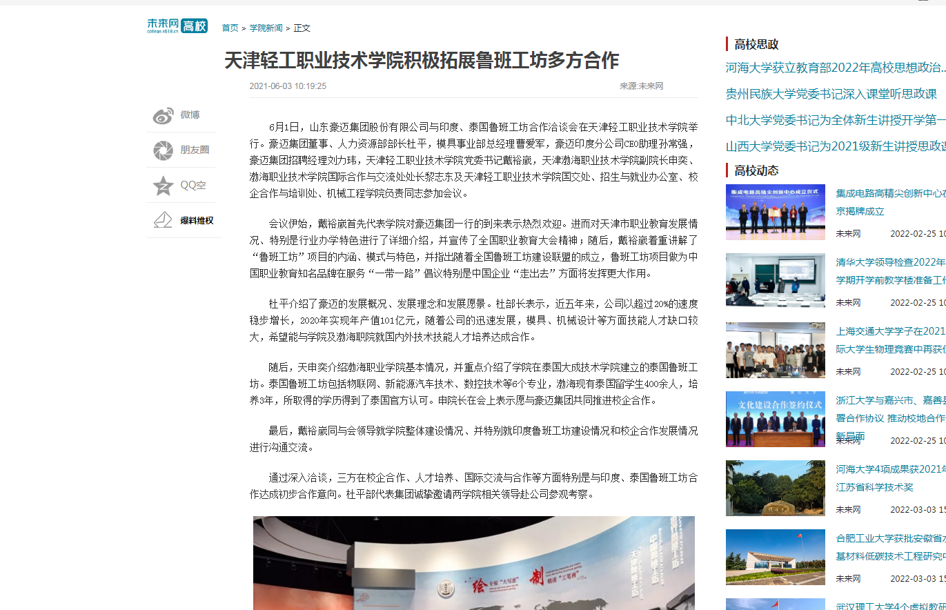 未来网:新利18平台积极拓展鲁班工坊多方合作