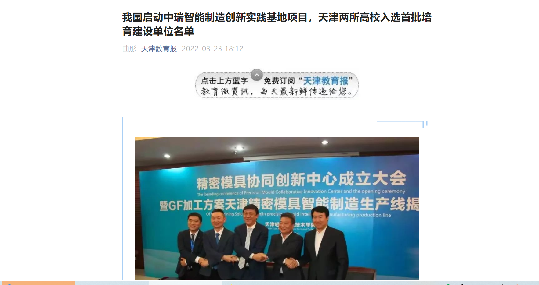 天津教育报:我国启动中瑞智能制造创新实践基地项目,天津两所高校入选首批培育建设单位名单