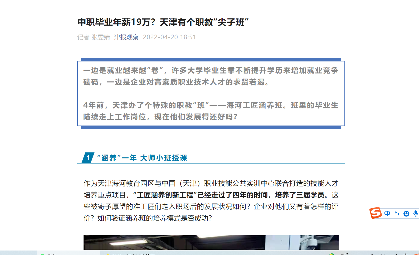 津报观察:中职毕业年薪19万?天津有个职教“尖子班”