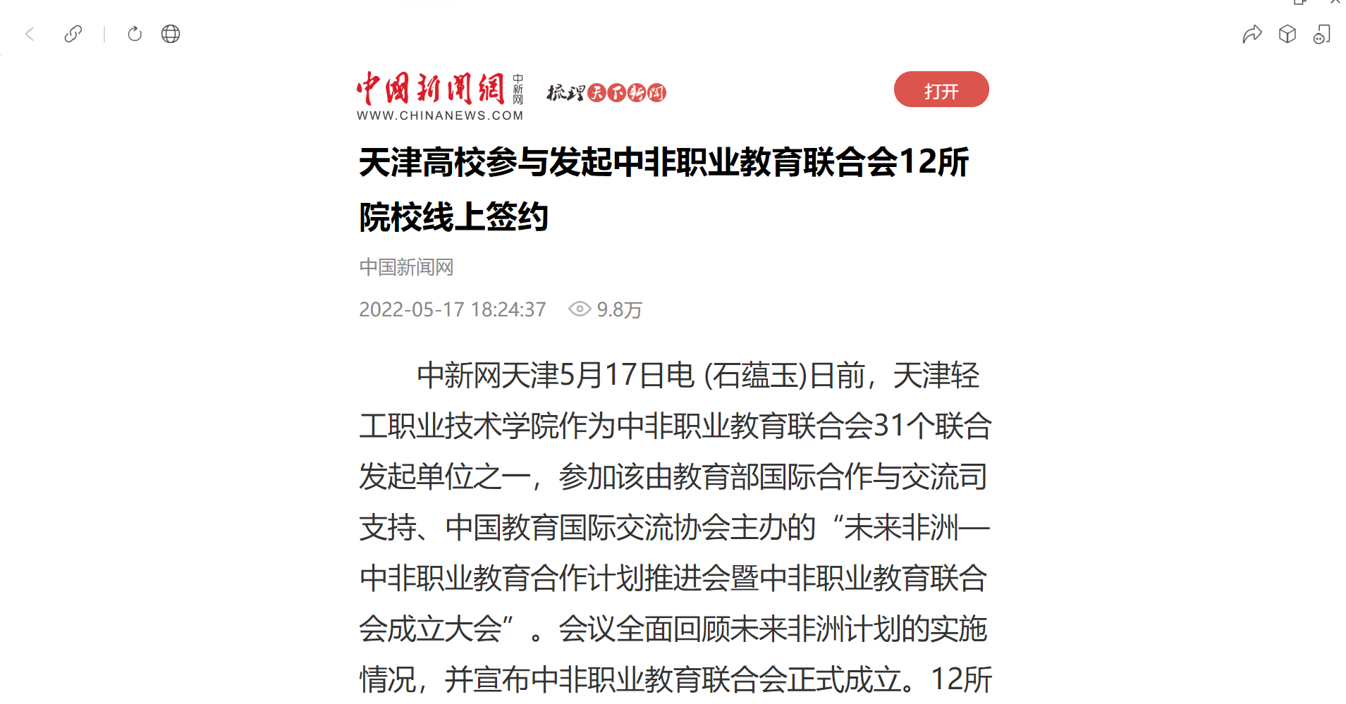 中国新闻网:天津高校参与发起中非职业教育联合会12所院校线上签约