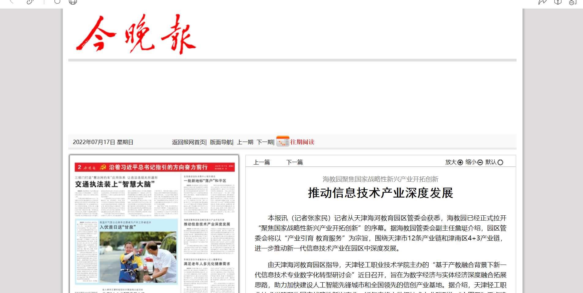 本报讯(记者张家民)记者从天津海河教育园区管委会获悉,海教园已经正式拉开“聚焦国家战略性新兴产业开拓创新”的序幕。据海教园管委会副主任詹珽介绍,园区管委会将以“产业引育 教育服务”为宗旨,围绕天津市12条产业链和津南区4+3产业链,进一步推动新一代信息技术产业在园区中深度发展。