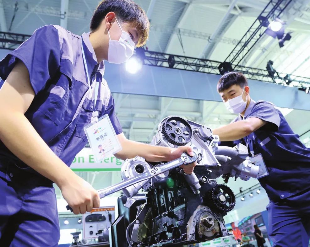 一座绿色的友谊之桥搭建起了中国职业教育与世界对话的平台,走进线下博览会鲁班工坊建设成果展,天圆地方的设计让人印象深刻。展馆内顶层,设有21个鲁班工坊海外合作院校的LOGO。鲁班工坊是天津原创并率先实践的中外人文交流知名品牌,是中国职业教育国际化发展的重大创新。展馆内,一条时间轴详细记录了鲁班工坊项目建设的历程。从2016年3月8日泰国、2017年5月18日英国、2018年10月28日柬埔寨、2019年3月28日吉布提、2020年11月30日埃及……随着移动屏幕滑行在这条时间密集的时间轴上,过去6年中,天津在19个国家建设20个鲁班工坊的点点滴滴,尽现眼前。在泰国鲁班工坊展示区,身着泰国传统服饰的天津渤海职业技术学院外籍教师黄可莹,用流利的中文为大家讲述鲁班锁的制作工艺与流程,让人仿佛有了一种穿越的感觉。这个中国古代传统的土木建筑固定结合器,与鲁班工坊一道,已经成为中国职业教育走向世界的标志。在吉布提鲁班工坊展示区,深圳职业技术学院的顾问、德国教授马丁·弗莱舍尔,“驾驶”着动车组模拟设备,在铁轨上体验着中国速度。听说这样的中国装备和中国技术已经“落地”非洲,他不禁伸出大拇指,“鲁班工坊,让中国技术走出国门,真的很棒!”在埃及鲁班工坊展示区,中国汽车工程学会秘书长徐念峰仔细地聆听着工作人员的讲解。得知目前由新利18平台与天津交通职业技术学院共同建设的埃及鲁班工坊,开设了数控设备应用与维护、新能源应用技术、汽车运用与维修技术等5个专业,并首次实现了埃及中高职贯通,徐念峰对此赞赏有加。“目前,中国新能源汽车技术世界领先,随着新能源汽车出口数量的不断增加,配套的技术服务与人才支撑也将借助鲁班工坊平台走出国门。”徐念峰说。