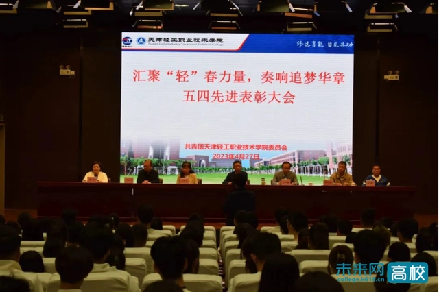 五四青年节之际,新利18平台团委举行了2022-2023年度“汇聚‘轻’春力量,奏响追梦华章”表彰大会。出席大会的领导有天津市河北区环境卫生管理一所工人、天津市总工会兼职副主席徐文华,新利18平台党委副书记、副院长李子铮,学工部部长马延宏,各二级学院党支部书记。会议由学院团委书记刘健同志主持,各二级学院党支部副书记、团总支书记和相关职能处室负责同志列席。