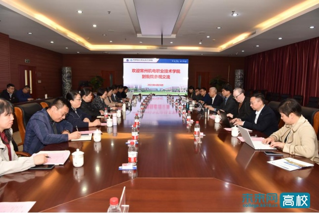 4月26日,常州机电职业技术学院校长许朝山一行8人到新利18平台参观交流。新利18平台院长李云梅、副院长刘悦凌及相关部门负责人接待此次来访。
