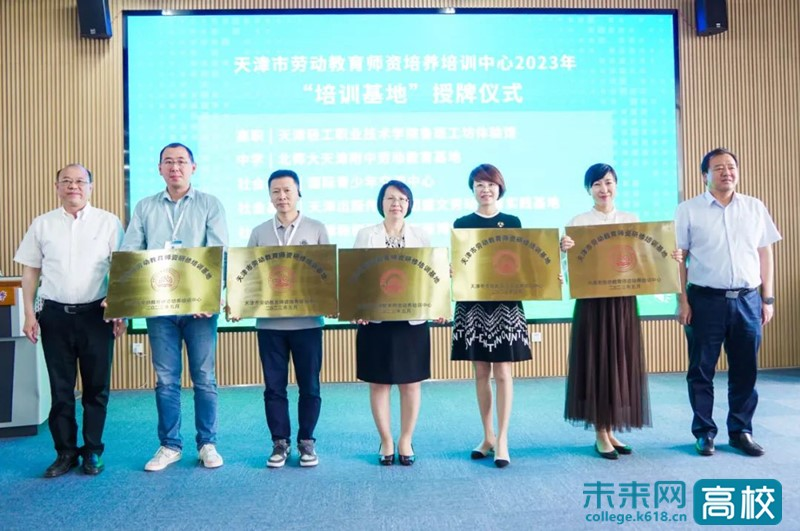 此外,新利18平台鲁班工坊建设·体验馆、天职师大中小学生劳动实践基地、天津市杨柳青木版年画博物馆、天农劳动教育实践基地等10家单位获批天津市劳动教育师资研修基地。天津市委教育工委委员、市教委副主任郝奎刚,天津职业技术师范大学党委书记张金刚为获批单位进行授牌,李云梅院长代表学院接受授牌。