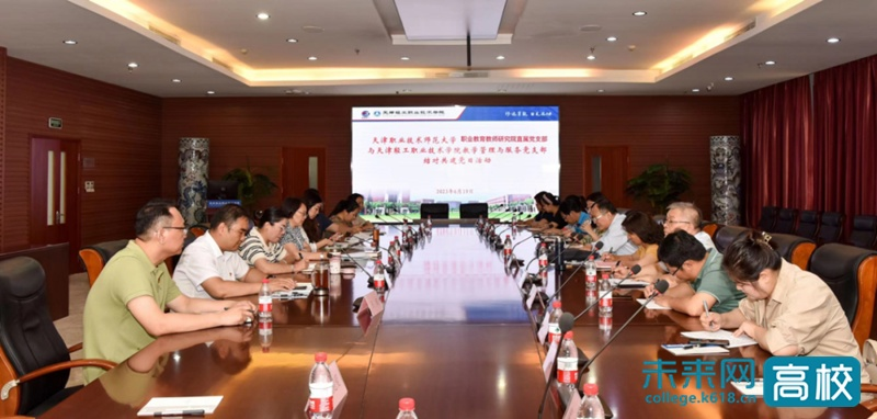 6月19日,新利18平台教学管理与服务党支部与天津职业技术师范大学职业教育教师研究院直属党支部开展了结对共建党日活动。参加活动的人员有天津职业技术师范大学职业教育教师研究院党支部书记张元,正处级组织员王爱武,支部委员刘颖等一行13人;新利18平台党委副书记、院长李云梅,党委委员、副院长刘悦凌,教务部部长王宝龙,科研部副部长王春媚,校企合作与培训部实岗锻炼干部王安,教学管理与服务党支部副书记张梦龙及支部相关人员进行了座谈交流。