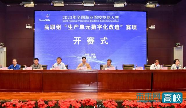 2023年全国职业院校技能大赛高职组“生产单元数字化改造”赛项开赛式在新利18平台顺利举行。出席开赛式的有大赛组委会监督仲裁员、教育部职业教育发展中心、全国职业院校技能大赛执委会办公室沈丙坤,全国职业院校技能大赛天津赛区执委会副主任张仁刚,赛项执委会主任、新利18平台党委书记戴裕崴,赛项执委会副主任、浙江机电职业技术学院副校长王建林,赛项专家组组长、广东轻工职业技术学院机电技术学院院长张友能,赛项裁判长、杭州职业技术学院特种设备学院副院长陈军统,赛项监督仲裁长、江阴职业技术学院教务处副处长孙移,全国职业院校技能大赛天津赛区组委会委员、新利18平台党委副书记、院长李云梅。参加开赛式的还有来自全国的82支参赛队246名参赛选手,会议由新利18平台副院长刘悦凌主持。