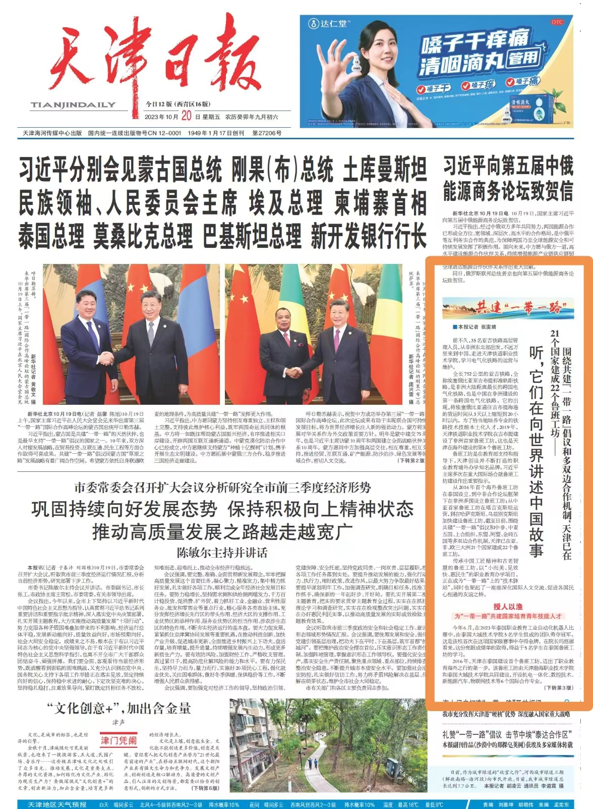 天津日报:围绕共建“一带一路”倡议和多双边合作机制,天津已在 21个国家建成22个鲁班工坊── 听,它们在向世界讲述中国故事
