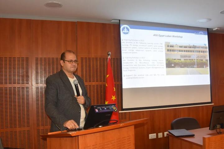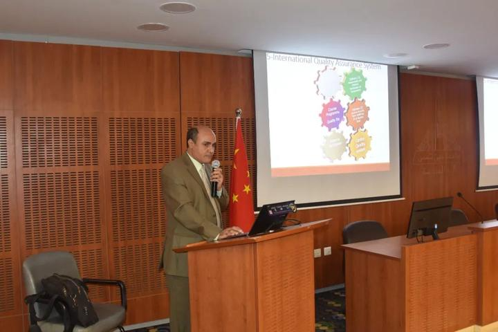 四名埃方专家围绕《关于BTEC职业教育国际标准》《做中学——艾因夏姆斯大学鲁班工坊EPIP》《贝尼苏韦夫技术大学办学优势、校企融合及国际合作项目》《技术教育改革策略》进行专题发言。
