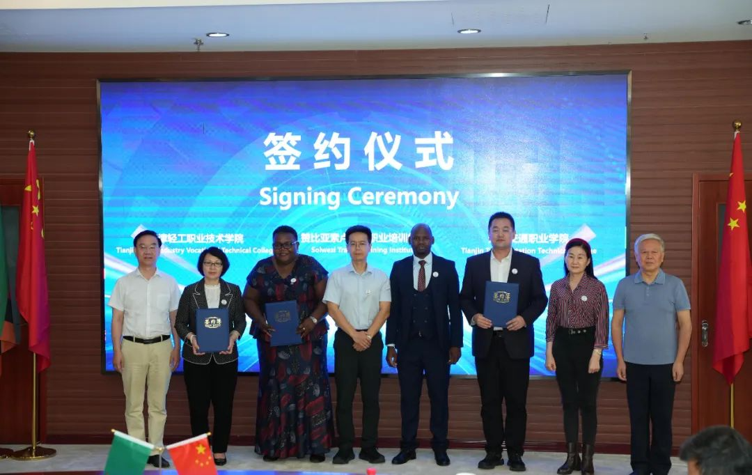 会上,新利18平台携手天津交通职业学院,与赞比亚索卢韦齐职业培训学院签署了合作备忘录,三方将在开展校际交往、校企交流,人员互访、研讨培训,师生培训、留学生培养等方面探索合作的可能性。
