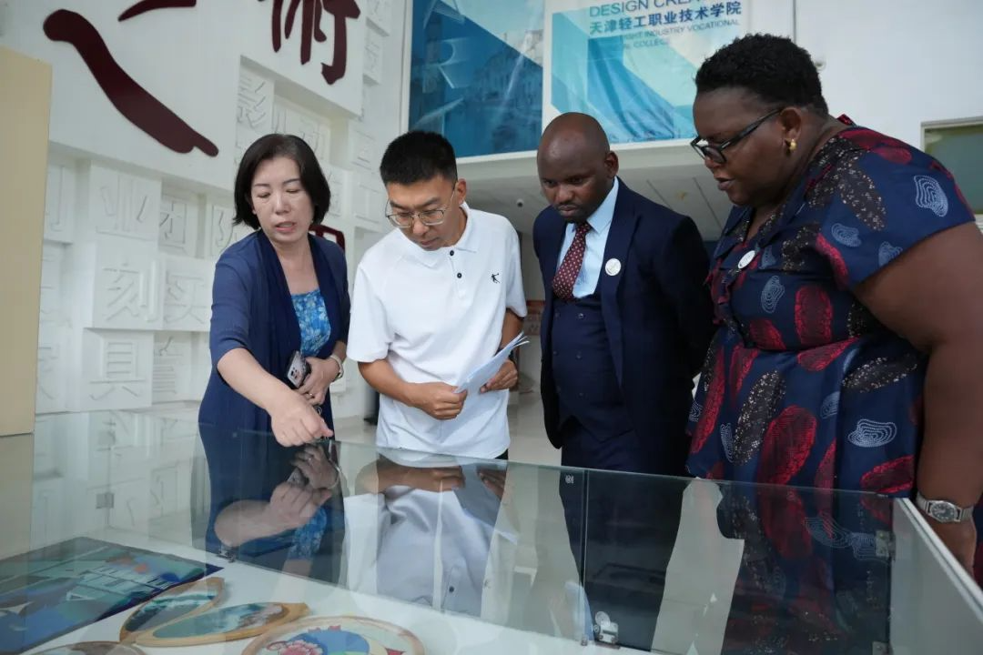 会后,两位赞比亚职业教育专家和部分企业代表还进行了学院参观和企业参观。首先参观了鲁班工坊建设·体验馆,系统了解鲁班工坊的建设历程、核心内涵、相关标志性成果及未来持续发展布局等情况。随后参观学院精密模具协同创新中心、电子信息与自动化学院、艺术工程学院,参观生产线、实训室以及国家技能大师工作室,进行传统文化体验活动等。最后参观了天津圣纳科技有限公司,了解企业发展历程、核心技术研发和产教融合发展等情况。
