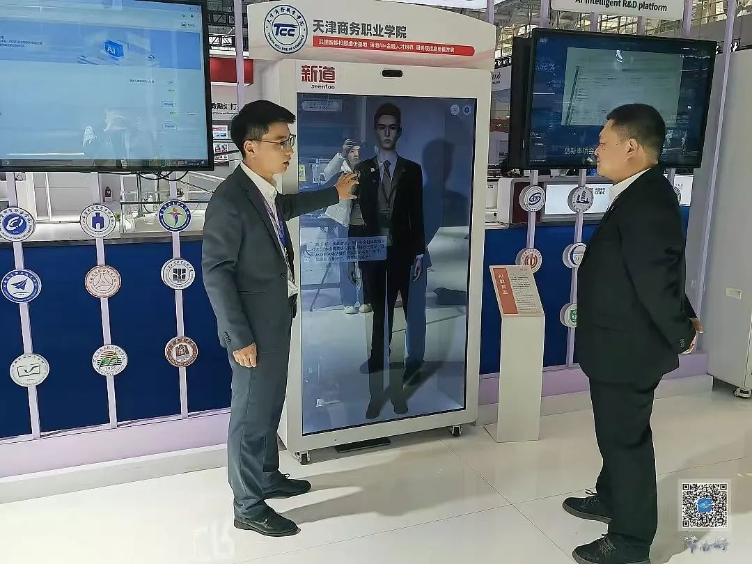 “感谢天津海河教育园区管委会的有力组织,我们揭下天津商务职业学院‘产教融合需求’榜单后,围绕学校‘智能投顾虚拟仿真实训平台’项目的需求打造了‘数字人全息舱’。”在2024世界职教大会同期举办的专题展中,参与津南区“揭榜挂帅”项目的用友—新道科技股份有限公司备受关注,产品负责人黄俊磊热情地讲述着产教融合新成果,“基于企业的实践经验和AI学科大模型,‘数字人全息舱’可进行专业知识问答、资产配置训练、智能分析评价等,大大缩短金融类从业者适岗时间,这也是全国首个完全基于AI技术的商科实训平台,将深度培养金融服务人才。”