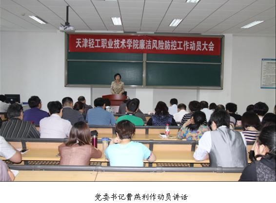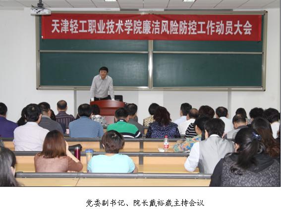 学院为了进一步落实渤轻集团关于加强廉洁风险防控机制建设的要求,按照学院2015年纪委工作要点的部署, 5月16日上午召开学院加强廉洁风险防控机制建设动员会,全体院领导、各级纪检委员、全体中层干部、部分青年干部以及学院效能监察立项的有关人员等80余人参加了本次会议。