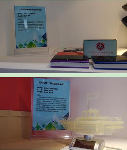 我院入选的5件展品中3件获奖,其中夏裕??老师指导的草书书法立轴获得二等奖,杨忠悦老师指导的3D打印之“轻工远扬号轮船”、丁玮老师指导的太阳能/锂电池无线充电宝2件作品获得三等奖。作品展出期间我院电子信息与自动化学院丁玮老师、皮琳琳老师、实训车间王称老师对参赛展品进行生动细致的讲解,给参观者留下了深刻的印象。学院副院长李云梅亲临展洽会现场进行指导。教育部副部长鲁昕出席全国职业院校学生技术技能创新成果交流赛现场并到天津馆参观。