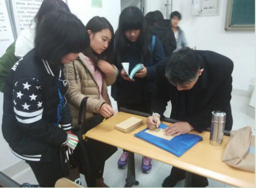 傅大师的讲座主要阐述了天津泥人张的历史沿革、风格以及艺术特色,并展示了历代泥人张优秀作品的图片,使同学们大开眼界,受益匪浅。会上同学们还向傅大师请教关于泥人张制作等方面的问题,傅大师都一一做了详尽的讲述。会后不少同学兴趣盎然,邀请傅大师签名留念,傅大师表示今后还会继续给艺术工程学院的学生讲解关于泥人的故事,也希望有兴趣的同学能够加入到泥人制作的行业中,为我们的“泥人张”非物质文化遗产的传承贡献力量。