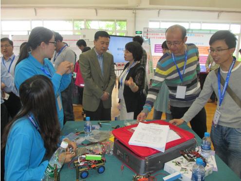 2016年5月7日,学院组织的2016年全国职业院校技能大赛同期活动拉开了序幕,此次活动丰富多彩、规模盛大。活动期间,莅临学院参观体验的各级领导、专家、学者们络绎不绝。5月9日上午,天津渤海轻工投资集团有限公司副总经理郭学波、科技部部长穆国春,天津第一轻工业学校校长褚建伟等领导莅临学院,在学院党委书记曹燕利、副院长李云梅、副院长彭强的陪同下参观体验了学院的各项同期活动。在“互联网+”新技术体验区各参展企业向集团领导介绍展示了各自的新产品与新技术,集团领导对“互联网+”的企业发展模式给予了充分肯定。随后,集团领导依次参观了机械工程学院的模具专业建设成果展及智能制造体验区、轻职众创空间、自动化学院的新能源技术及智能家居技术体验区、艺术工程学院的漫步“卢浮宫”油画展和经管学院的校企合作成果展示与体验区等。