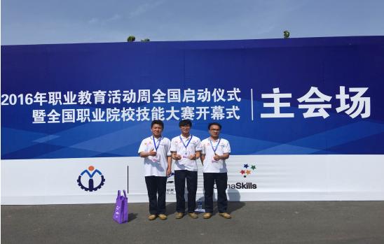 2016年全国职业院校技能大赛工业机器人技术应用赛项于5月11日上午在天津机电职业技术学院闭幕。来自全国各省、市、自治区共44支队伍参加了本届大赛。我院由电子信息与自动化学院王建明老师和于玲老师作为指导教师张璐、王天赐、王赫做为参赛选手组成代表队参加了比赛。
