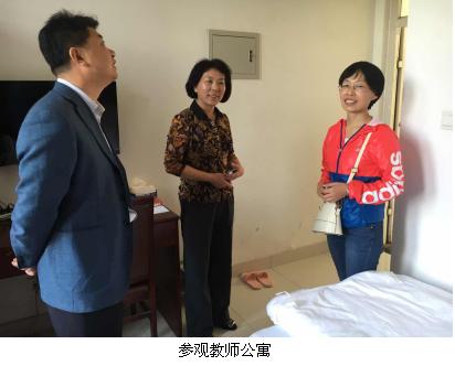靳局长现场参观了学员们上课的服装实训室,和任课老师及学员进行了充分交流;随后在艺术管理学院三楼会议室进行座谈,从学习、工作、教学等多方面与学院领导、赵春丽深入交流,肯定了我学院对此次培训工作付出的努力,感谢学院对此次工作的重视。最后参观了三位新疆学员住宿的寝室,对我学院提供的单间住宿及完善的住宿条件表示感谢。