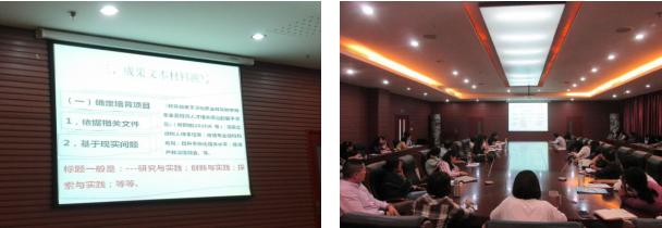 经管学院副院长白洁对教学成果奖的申报工作进行了精彩的讲解和培训,结合重庆市教科院职成教研究所谭绍华研究员的报告“谈职业教育教学成果奖培育”对教学成果奖的申报工作进行了详细解读,主要包括什么是教学成果奖、如何培育教学成果奖、成果文本材料撰写及案例分析等内容。