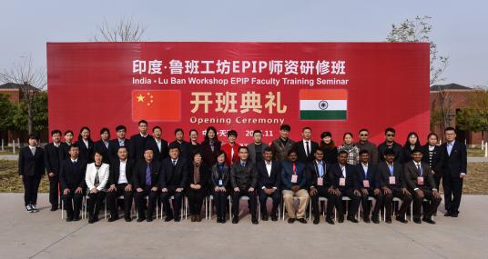11月9日,在天津机电职业技术学院召开了印度?鲁班工坊EPIP师资研修班开班典礼。 出席本次开班典礼的领导有:天津市教育委员会副主任吕景泉、高职高专处处长杨荣敏,印度金奈理工学院校长司丽拉先生,天津机电职业技术学院书记张文娟、院长张维津,我院院长戴裕崴、副院长李云梅。来自天津市机械工业协会,天津市模具工业协会,天津市新能源协会,大连机床集团有限责任公司,浙江天煌科技实业有限公司,天津启诚伟业科技有限公司等行业企业的代表也参加了本次开班典礼。参加本次典礼的还有6位印方教师以及相关培训教师。天津电视台、天津日报、中国青年报、天津教育报、天津广播电台、现代职业教育网等媒体都出席典礼做相关报道。