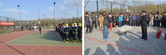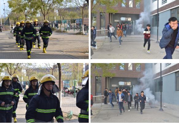 为了开展好第26个“119消防宣传月”活动,学院安全保卫处与机械工程学院于2016年11月15日在学工部、学生公寓管理中心、后勤服务中心等部门的大力配合下,在五号学生公寓组织了突发事件(消防)应急疏散演练及灭火器使用现场演练,这是今年学院组织进行的第二次应急疏散演练。14:00分随着演练总指挥李子铮院长助理一声“演练开始”的口令,公寓管理员立即断电、开启应急疏散逃生通道大门,伴随着烟雾弹释放出的烟雾,公寓内各个寝室的同学们整齐、有序的按照疏散指示图从中、东、西三个楼梯进行疏散逃生,演习仅用时3分钟,五号楼内的近260余名住宿学生全部安全有序的疏散到楼外的小广场集合。