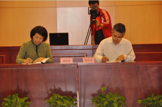 学院党委书记曹燕利与彩塑大师傅长圣签订了聘用协议,并和胡如祥副院长一起,为彩塑大师及方大开教授颁发聘书。