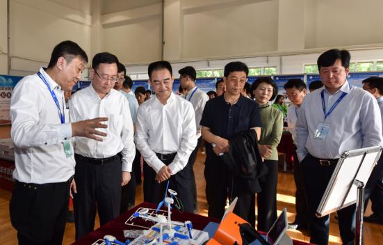 在涵哺楼前,教育部和教委领导见证了京津冀新能源协同创新中心的揭牌仪式,并与大家合影留念。随后,来到全国职业教育技能大赛同期体验馆,并参观了《“一带一路”建设纪实》展览。教育部、市教委领导驻足观看,认真聆听讲解员的解说,时而露出满意的笑容。王司长说:天津市教委在服务国家“一带一路”倡议中做出了重要贡献,值得全国职业院校借鉴和推广。在体验环节,各位领导很有兴致,纷纷停留并参与体验活动。然后,领导们视察了2017年全国职业院校技能大赛“物联网”赛项的赛场,对我院承办赛项严密细致的组织工作及主动热情周到的服务,给予了充分肯定和高度评价。最后,来到了自动化学院的实训现场,视察了智能家居、生产过程自动化和光伏发电实训基地。