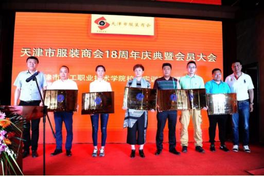近日,天津市服装商会十八周年庆典如期举行。商会会长、常务副会长、副会长单位等100余家代表参加了本次活动,我院院长戴裕崴以及我院艺术工程学院院长刘建伟出席本次活动。戴裕崴院长在庆典活动期间为天津天石休闲用品有限公司、天津市飞尼克斯实业发展有限公司、天津市芭而蒂服饰有限公司、天津市应大服饰有限公司、天津市雅泉工贸有限公司、天津奔骜服饰有限公司6家校企合作的服装企业实训单位授牌。刘建伟院长接受了天津天石休闲用品有限公司赠予的30台缝纫机和2台包缝机。