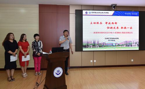 戴院长结合我院培训情况作了题为《主动服务 帮扶西部 协调发展 职教一家》的总结汇报。按照津和两地领导达成的由天津市帮扶和田地区筹建和田职业技术学院的决定,来自新疆维吾尔族自治区和田地区职业院校的赵春丽、努尔比亚·艾力和阿娜尔古丽·伊民托乎提三位学员于2016年9月1日至2017年6月30日在我院艺术工程学院服装设计与工艺专业进行学习。我院高度重视此项任务,落实教委的培训要求,召开专题会议,从学习、住宿、餐饮等多方面布置,专人负责,统一协调,圆满完成了此项培训任务,为新疆和田职业技术学院服装设计与工艺专业培养了一名专业带头人,两名骨干教师。