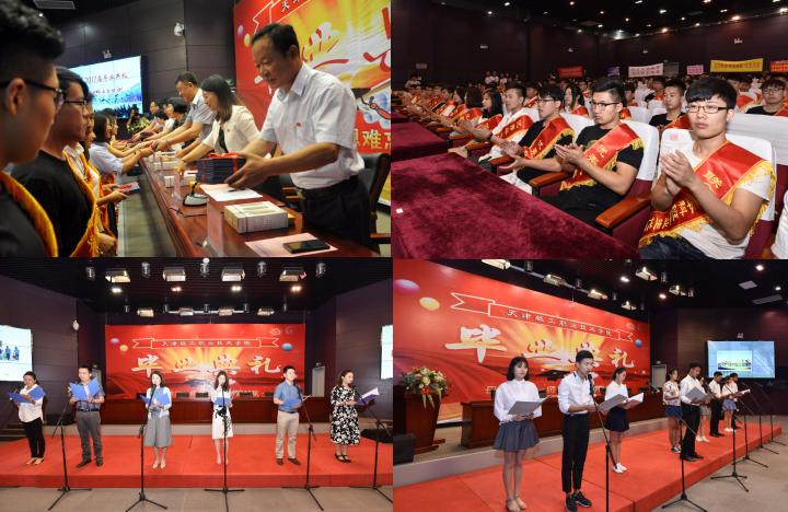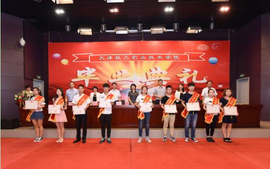 典礼在雄壮的国歌声中拉开了序幕。学院副院长李云梅老师宣读了《新利18平台关于2017届2959名学生准予毕业的决定》,之后学院领导为2017届毕业生代表颁发毕业证书;与此同时还为2017届联合培养本科班机械工程(模具设计与制造)专业的毕业生赠予了刻有学院校徽、校训的毕业纪念品;随后学院纪委书记韩淑君老师宣读了《新利18平台关于授予崔丽娜等104名同学为2017届“优秀毕业生”和授予张紫旗等12名同学为2017届 “金牌优秀毕业生”荣誉称号的决定》,学院领导共同为这116名优秀毕业生代表颁发了荣誉证书和赠予了纪念品。与往年不同的是,到场的师生共同欣赏了学工部精心制作的教师和辅导员老师们为所有毕业生献上的动情的朗诵节目《心中的歌》,节目中包含深情的回忆了同学们在校的点点滴滴,老师们在往日生活中的深刻怀念和对学生的不舍之情;之后2017届毕业生和在校生代表更是用动人的诗歌朗诵《我们毕业了》展现了他们对学院依依不舍的情怀,他们感谢学院和老师们对他们三年来的关怀和帮助,同学们在朗诵的过程中激动的流下了泪水,感动了在场所有领导和观众,他们在此刻代表饱含激情的用句句话语深情的吐露表达了毕业生对母校的无限感恩与祝福和对学弟学妹的嘱托;来自中交机电局北方分公司工程技术部的主管――我院往届毕业生2008级机电专业李伟同学也来到了我们毕业生典礼现场,他讲述了学院培养他在校的情景,分享了日后进去企业的经验,他最感谢的是学院的培训与用人单位的衔接重要性,让他在单位中成为佼佼者,成为职业人的典范,最后表达了对曾经的辅导员和学生们深深的牵挂和祝福。