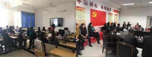 六是听党支部书记讲。各党支部结合“两学一做”学习教育常态化制度化第三专题的要求,分别举办了十九大精神学习宣讲活动,以宣讲会、座谈会、党课等形式,组织广大党员干部和教职工原原本本、原汁原味学习党的十九大精神,同时发挥各自专业特长,结合不同类型党支部构成特点,创新活动方式,以大量生动鲜活的实例和语言,在丰富多彩的宣讲活动中将十九大精神传播出去。