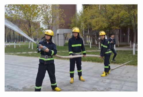 本次演练活动组织有序、行动迅速,同学们行动迅速、快捷,但也存在着自我保护不足的缺点,大多数同学没有用湿毛巾等防护用品遮掩口鼻,很容易发生熏呛、中毒等伤害事故。演练中学院学生志愿消防队的队员,还进行了扑灭初期火灾的实战演练。