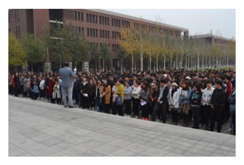 为了开展好第27个“119消防宣传月”活动,学院安全保卫处与经济管理学院于2017年11月9日在后勤服务中心等部门的大力配合下,在经济管理学院组织了突发事件(消防)应急疏散演练及灭火器使用现场演练。14:55分随着演练总指挥李子铮同志一声“演练开始”的口令,伴随着烟雾弹释放出的烟雾,正在上课的同学们在任课教师和辅导员的组织、指挥下整齐、有序的按照疏散逃生方向示意图从楼道内三个楼梯及外跨楼梯进行疏散逃生 ,仅用时3分48秒,教学楼内的1408名上课的学生和正在工作的教职员工全部安全有序的疏散到楼外的广场集合。