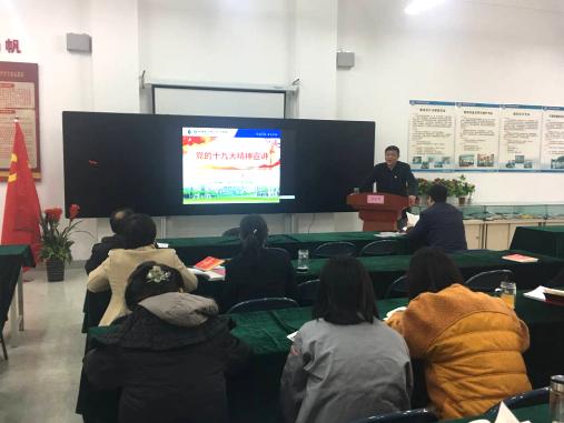 11月21日,学院党委副书记、院长戴裕崴同志带头在机械学院党支部党员大会上宣讲十九大精神并对做好学习宣传提出要求。戴裕崴同志指出,学习宣传好党的十九大精神首先要充分认识党的十九大的重大意义,其次要深刻领会和准确把握大会的精神实质,最重要的是要紧密联系思想政治和教育教学工作实际,把十九大精神落实到具体工作当中去。