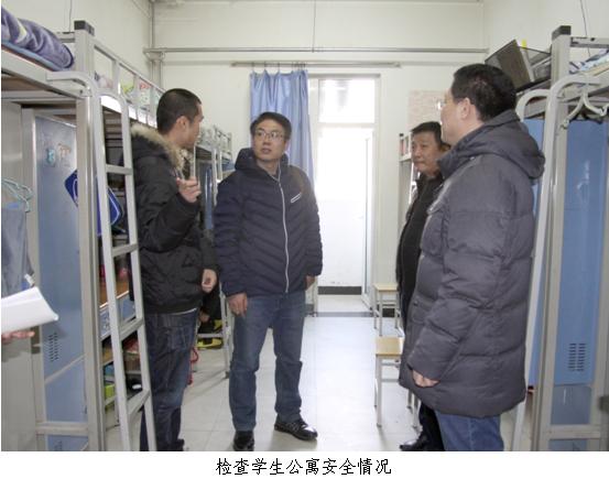 检查组一行实地检查了学院总监控室、学生公寓、学生食堂、变电站等重点部位,详细查看了消防器材、用气用电、安全防护等设施的维护和使用情况,检查了有关工作记录。