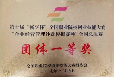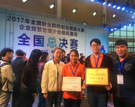 2017年12月9日,由教育部全国电子商务职业教育教学指导委员会、中国职业技术教育学会新利直营官网首页入口电话专业委员会主办的“2017年全国职业院校创业技能大赛企业经营管理沙盘模拟赛项”全国总决赛在佛山职业技术学院举行。此次比赛共有来自全国各地有119个学校138支队伍参赛! 我院由经济管理学院 白洁、高立荣两位老师指导,2016级工商企业管理专业刘回乡、刘浩、张美佳和董菲菲4名学生参赛,通过团结协作,顽强拼搏,最终获得企管沙盘项目决赛全国一等奖。“经营管理沙盘模拟竞赛”采用国际先进的商业模拟训练模式,是集知识性、趣味性、对抗性于一体的企业管理技能竞赛。每4位参赛学生组成一个团队,模拟经营一家工业企业在同一个市场环境条件下,按照同样的规则条件,连续经营6个年度,通过直观的企业沙盘,模拟企业实际运行状况。